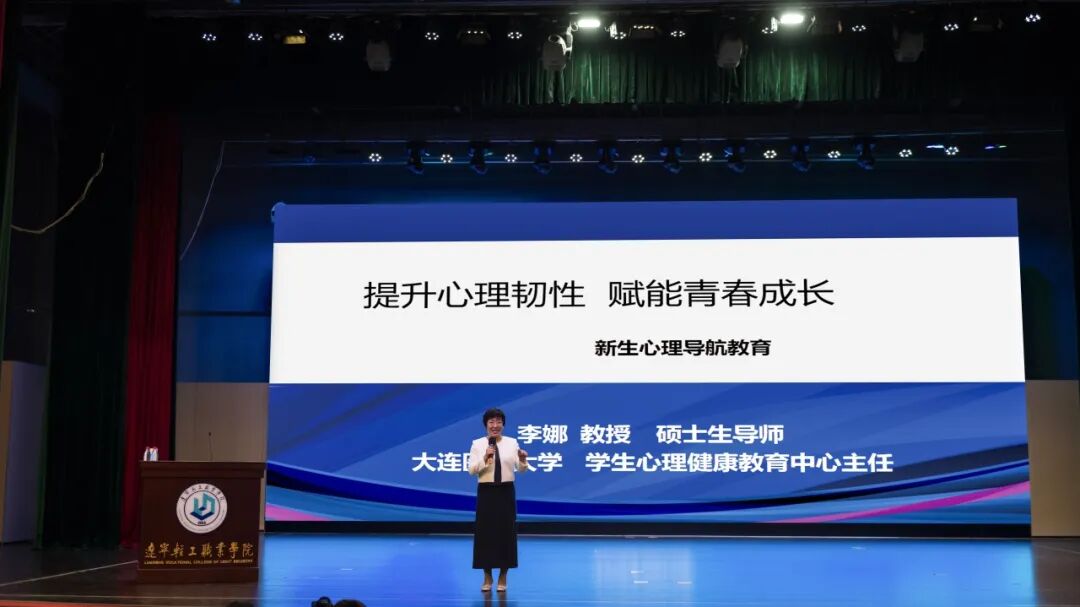 为帮助2025级新生尽快适应大学生活,提升心理素质,开启健康、积极、阳光的大学新征程,9月12日下午,辽宁轻工职业学院举办“大学新程,‘心’动启航”2025级新生心理健康教育专题讲座活动。特邀大连医科大学学生心理健康教育中心主任李娜教授作专题讲座。学院基础教学部(素质教育中心)、学生处相关部门负责人,各二级学院党总支副书记、专兼职辅导员以及2025级全体新生共3600余人参加讲座。讲座由基础教学部(素质教育中心)副主任徐传毅主持。